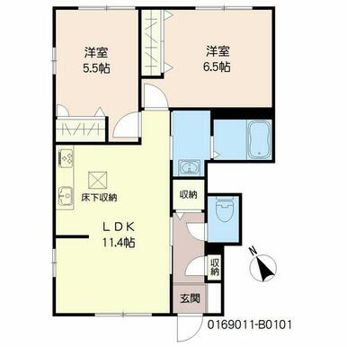 | 間取り | 2LDK(LDK11.4帖 洋室5.5帖 洋室6.5帖) | 主要採光面 | 南西 |